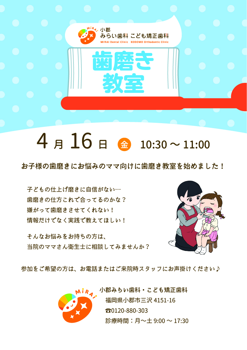 4月16日(金)10:30~11:00、親子歯磨き教室を開催します🎉