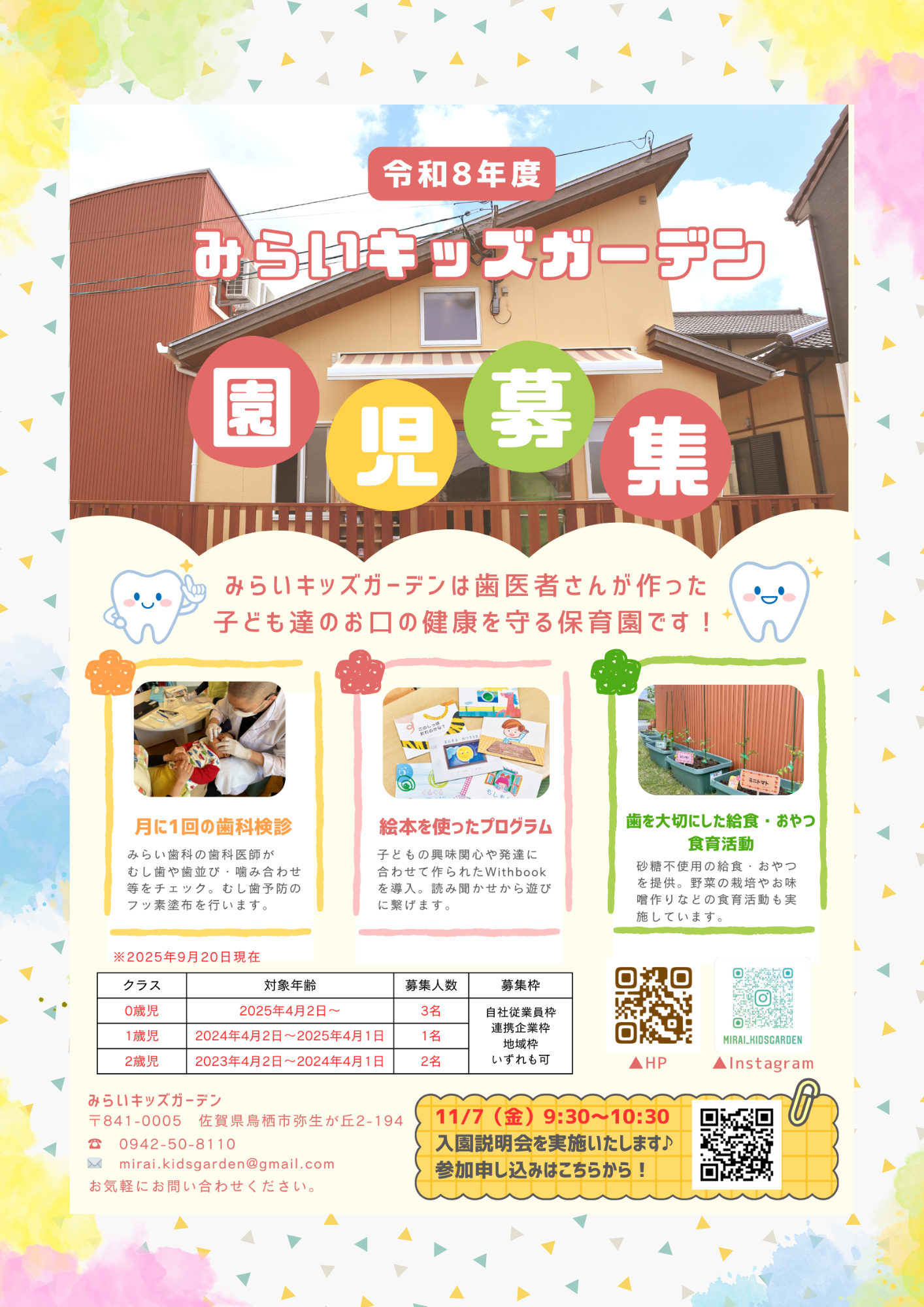 みらい歯科が運営している保育園「みらいキッズガーデン」よりお知らせです。